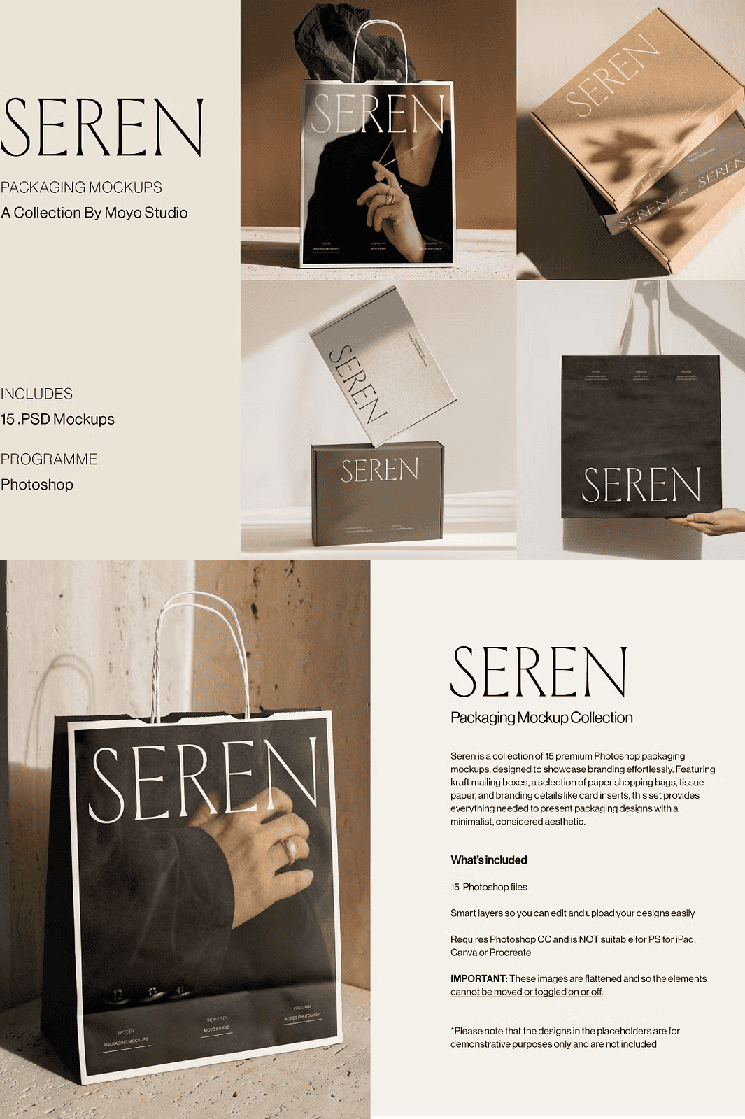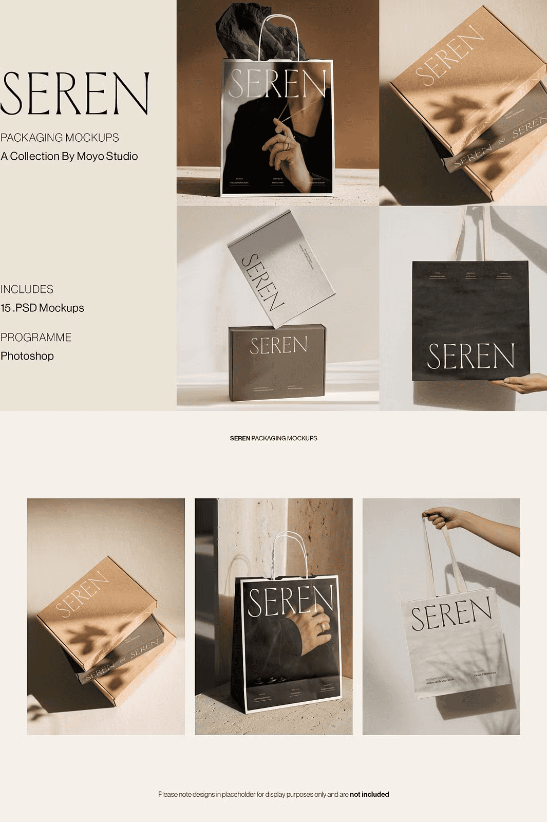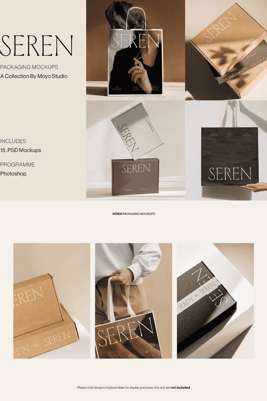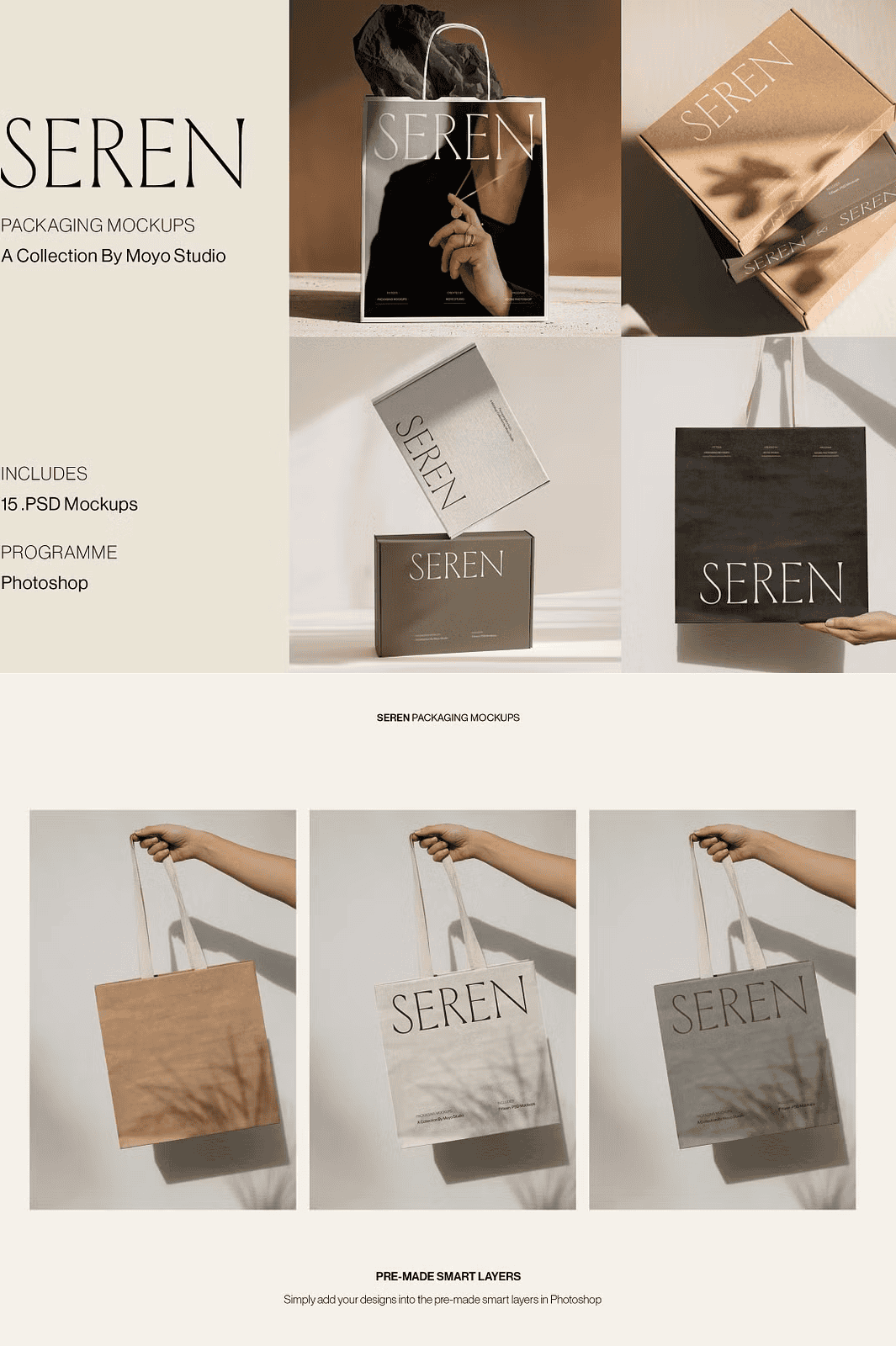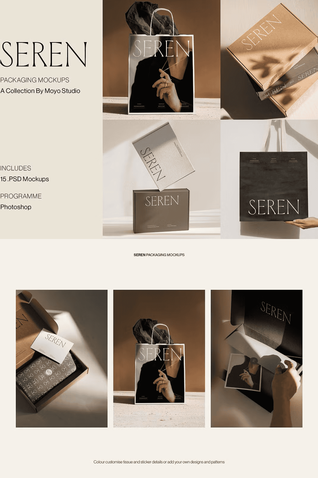 Unlock the full potential of your branding projects with the **Seren Packaging Mockup Bundle**—a thoughtfully curated collection of 15 high-resolution, fully editable Photoshop mockups designed to present packaging designs with a refined, minimalist aesthetic. This professional-grade bundle includes **kraft mailing boxes, paper shopping bags, tissue paper wraps, and branded card inserts**, all crafted to showcase your creative work in a clean, intentional, and highly believable way.