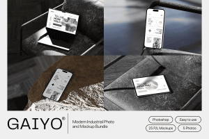 Present Your Work in Striking, Realistic Industrial Aesthetics Unlock the full potential of your design portfolio with the **Gaiyo Modern Industrial Photo & Mockup Bundle**,
