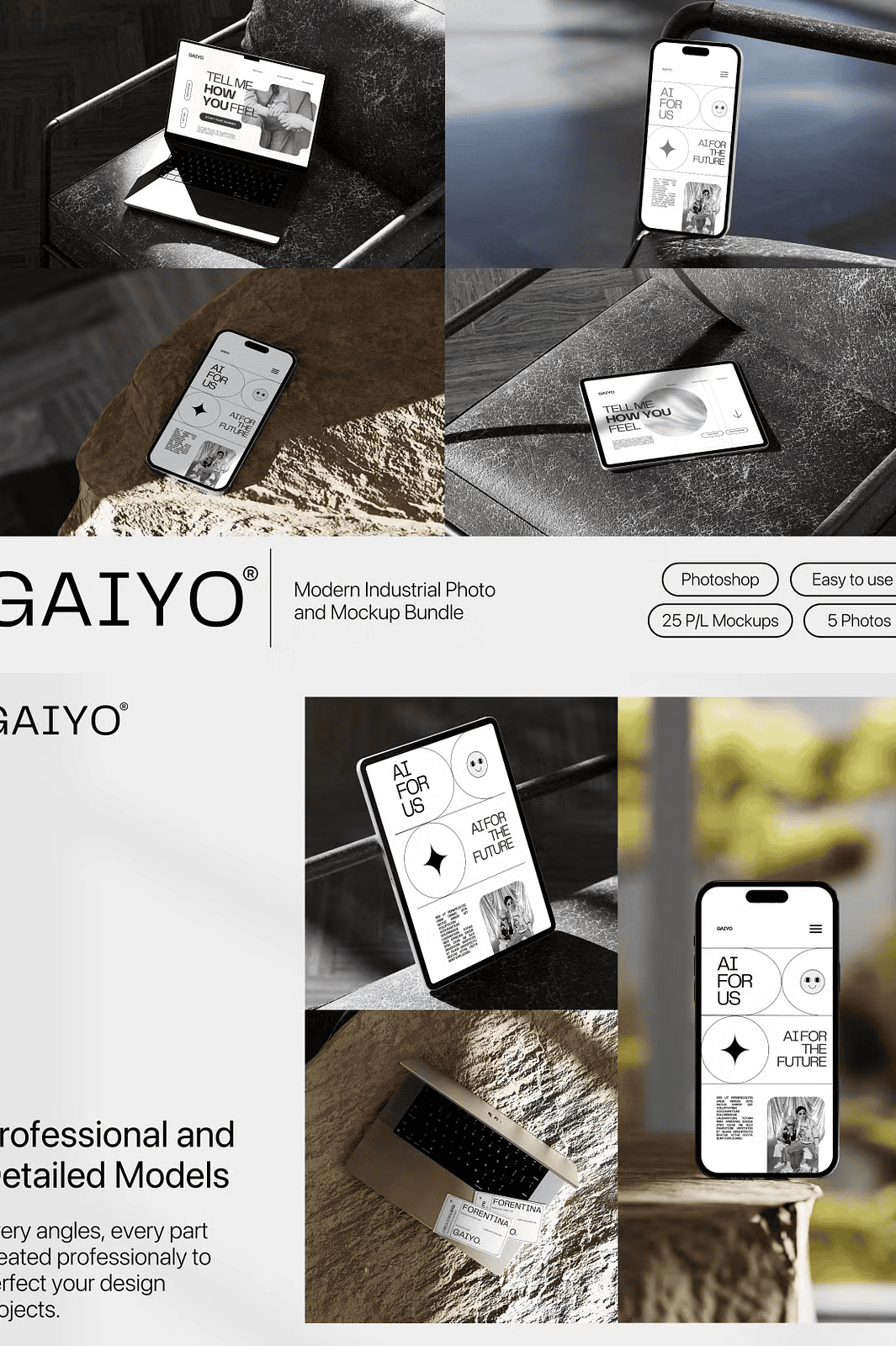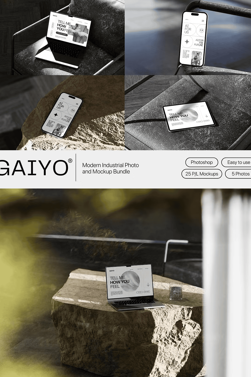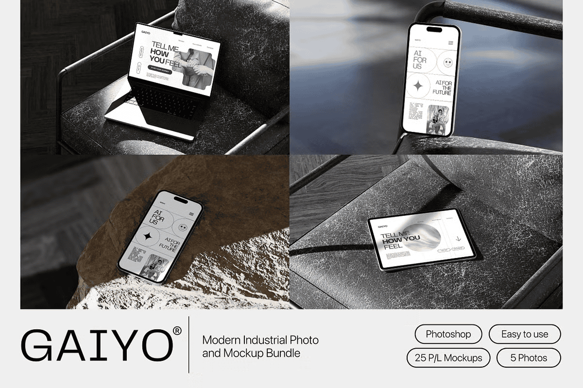 Download the Gaiyo Modern Industrial Mockup Bundle Today