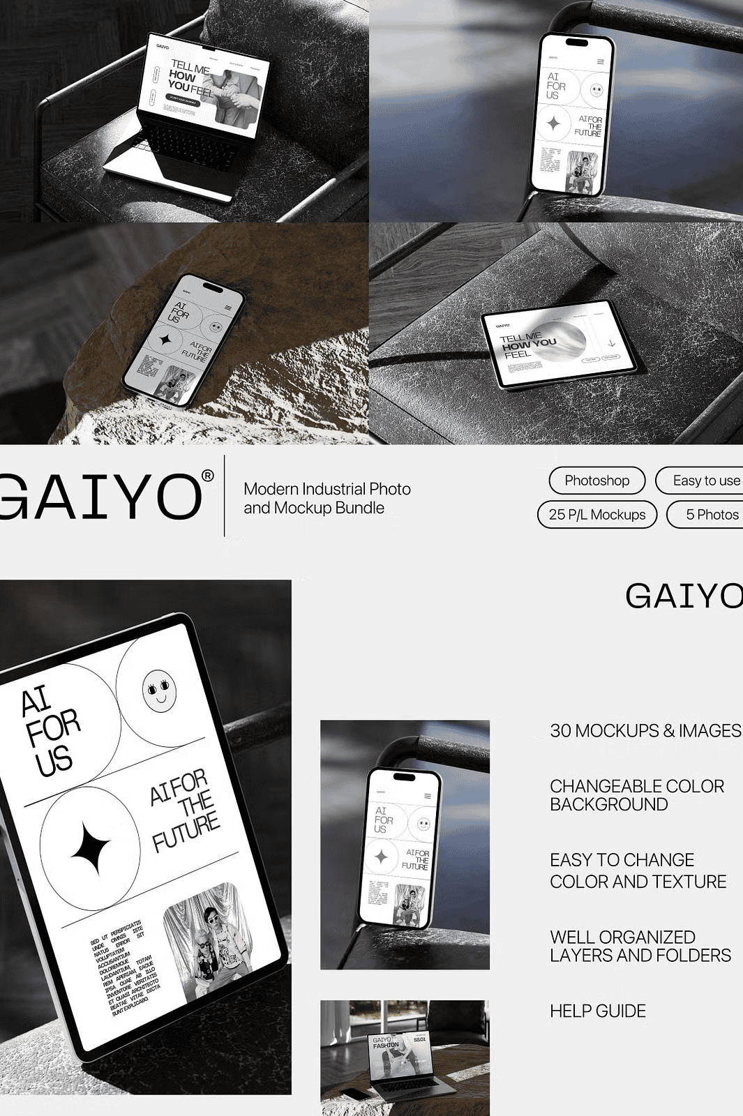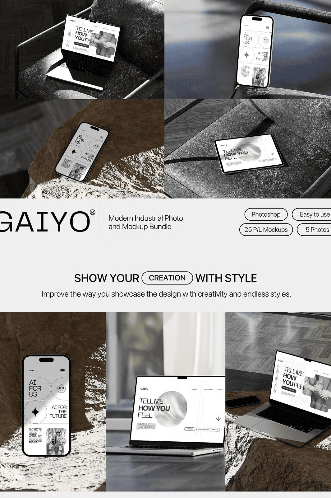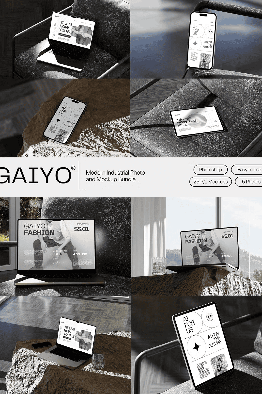 Download the Gaiyo Modern Industrial Mockup Bundle Today