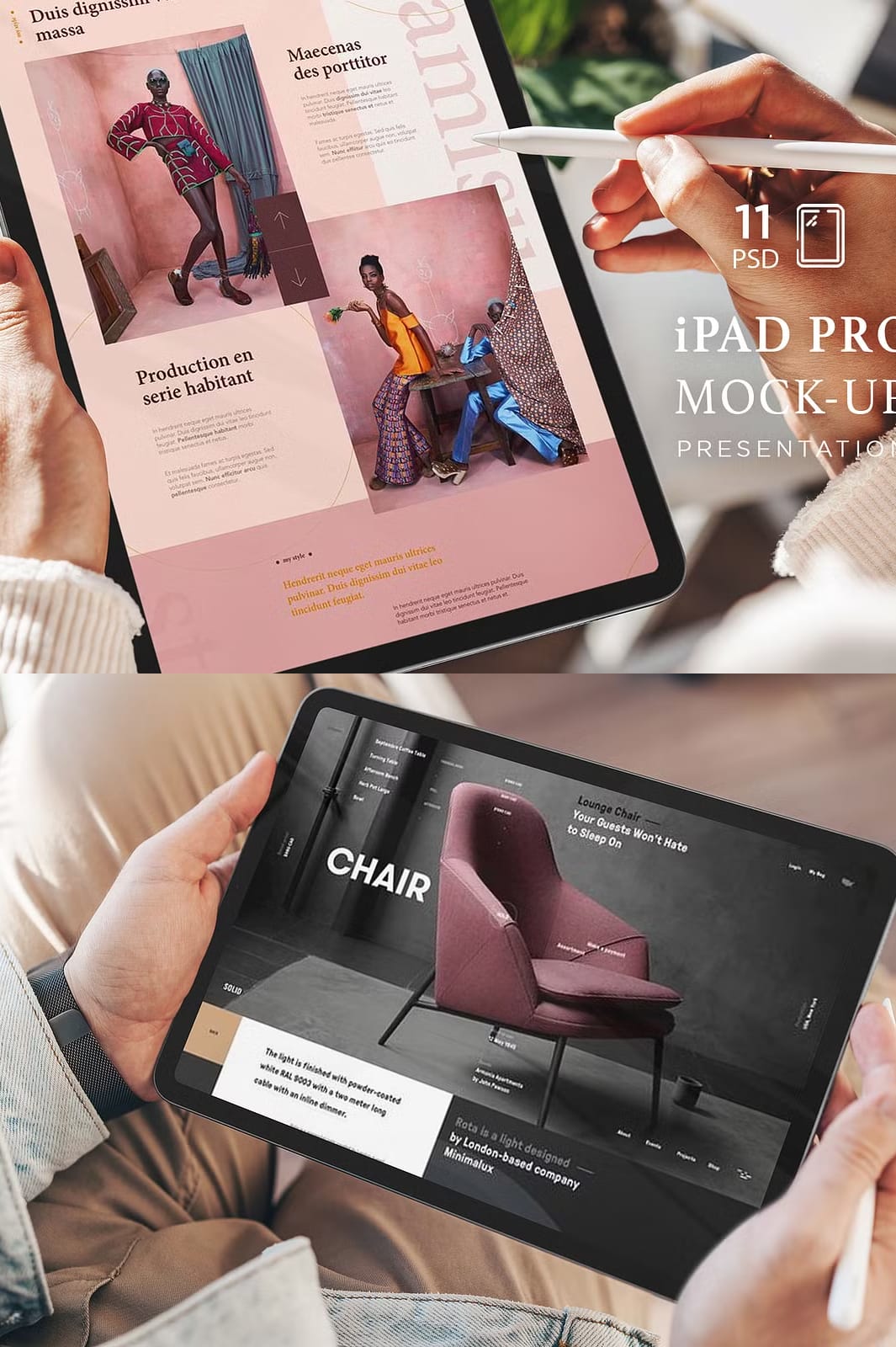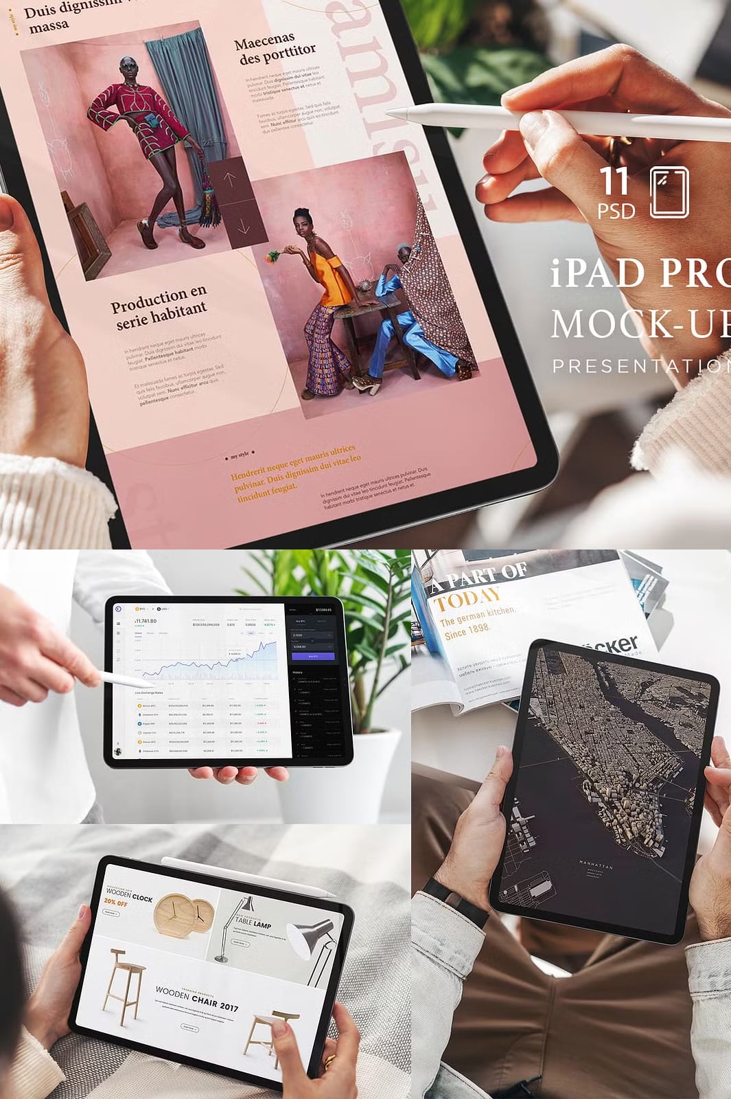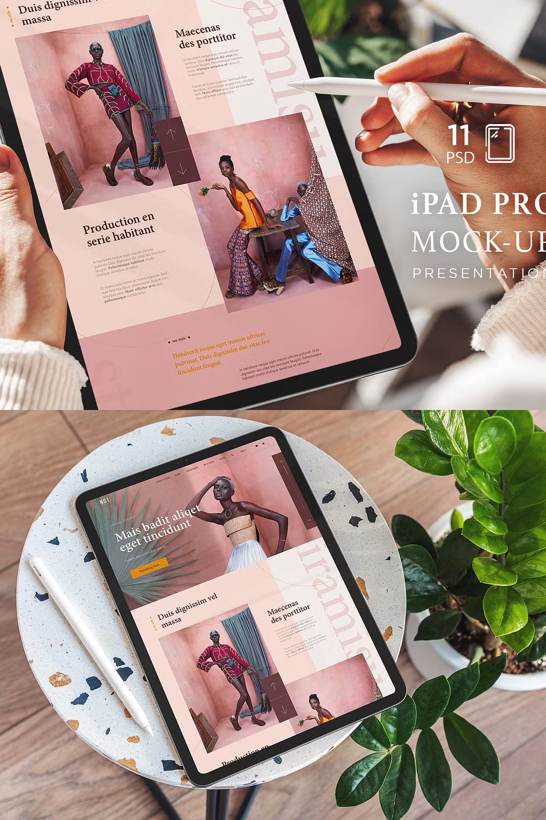This collection includes 11 PSD presentation files featuring real photos with male and female hands holding the iPad Pro, adding authenticity and relatability to your designs. The mockups support both bright and dark designs, ensuring your work looks great regardless of color scheme. Organized and named layers make navigation simple, while the included JPG help file guides you through the editing process.