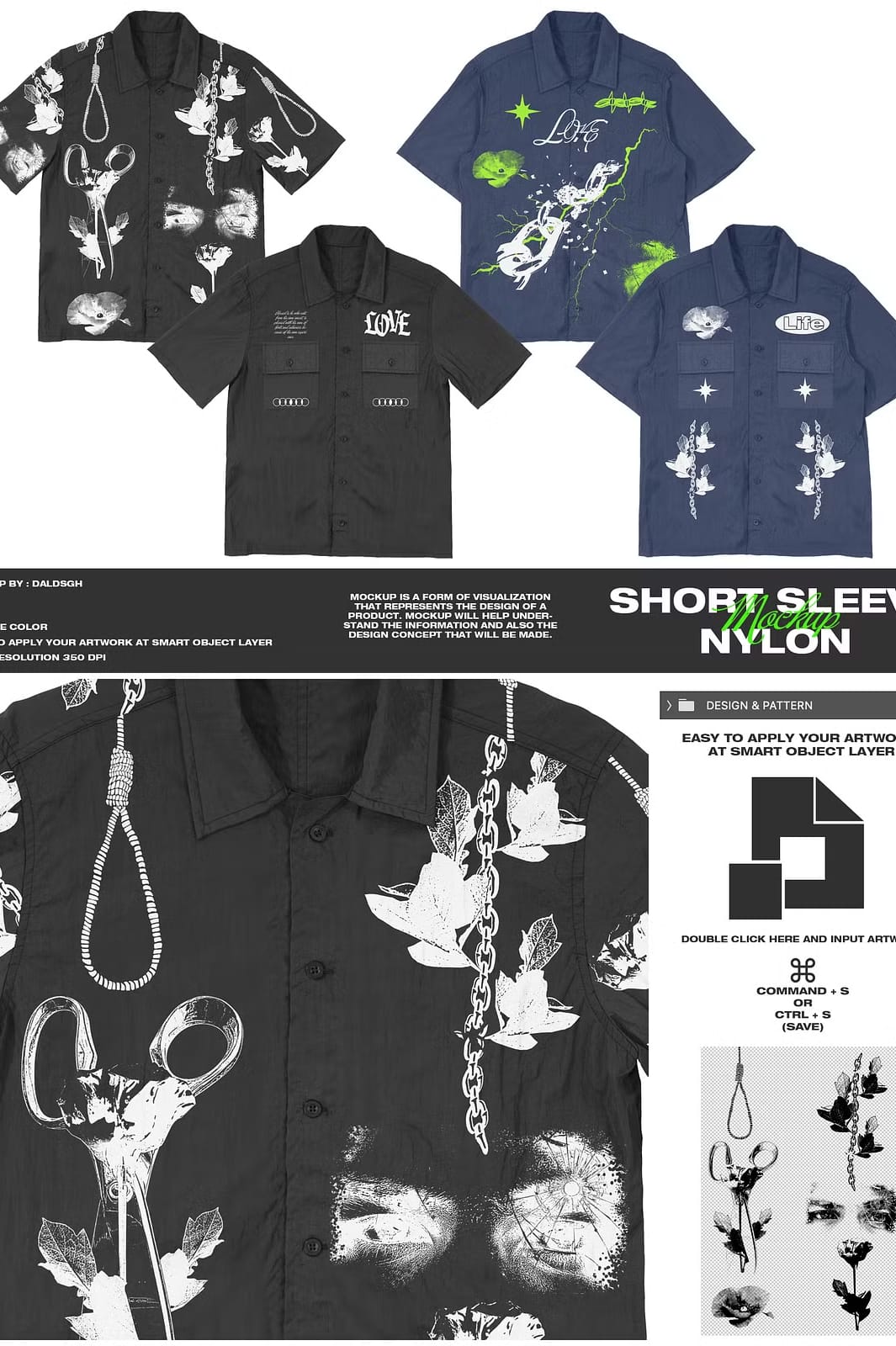Learn how to enter design, change colors, and select variations by watching the tutorial video: How to Use the Short Sleeve Nylon Mockup