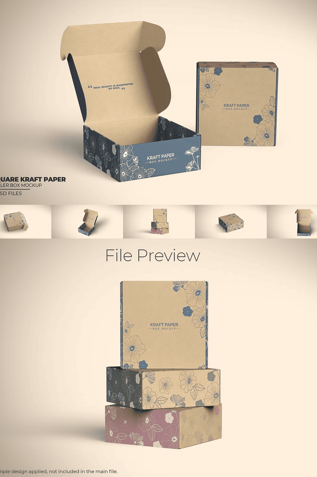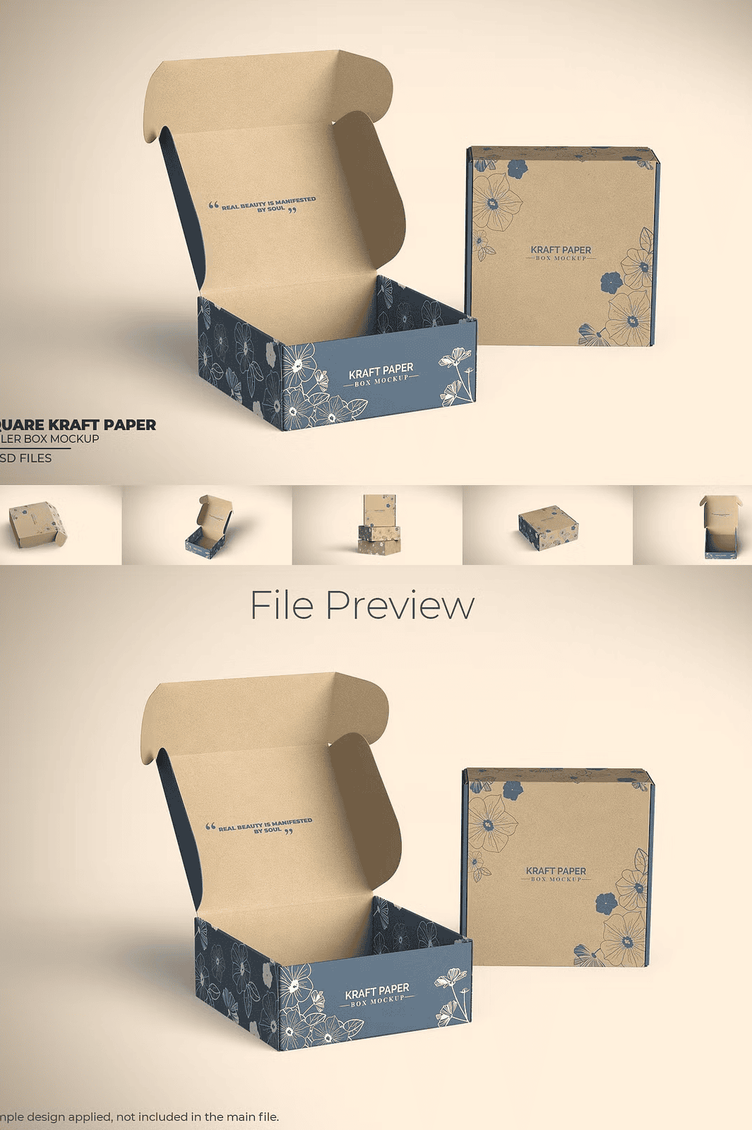 Go beyond standard mockups with the freedom to customize not only the box but also the entire environment. Each file comes with an editable background layer—swap out office desks, retail shelves, or minimalist studio setups with a few clicks. The inclusion of natural kraft paper textures with subtle grain and imperfections adds tactile realism, ensuring your mockups feel authentic and high-end. Whether your brand leans rustic, eco-conscious, or modern minimalist, this flexibility ensures perfect visual alignment.